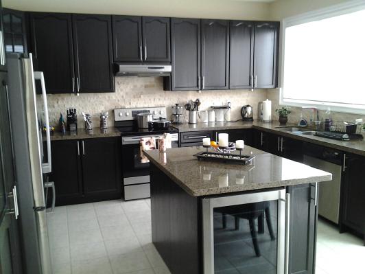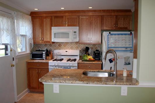 At the opposite end of the financial spectrum to the above, this kitchen just needed a facelift. New off the shelf oak look thermofoil cabinetry, granite counters, inexpensive ceramic tiles and a paint job made for a brand new kitchen that didn’t break the bank. These folks spent a lot less money than most, but still got a great kitchen that they will love for years to come. |
