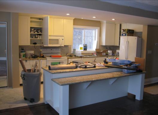 At the opposite end of the financial spectrum to the above, this kitchen just needed a facelift. New off the shelf oak look thermofoil cabinetry, granite counters, inexpensive ceramic tiles and a paint job made for a brand new kitchen that didn’t break the bank. These folks spent a lot less money than most, but still got a great kitchen that they will love for years to come. |